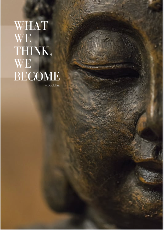 This piece features the quote: “What we think, we become.” - a reminder of how our thoughts shape our reality and inner world.